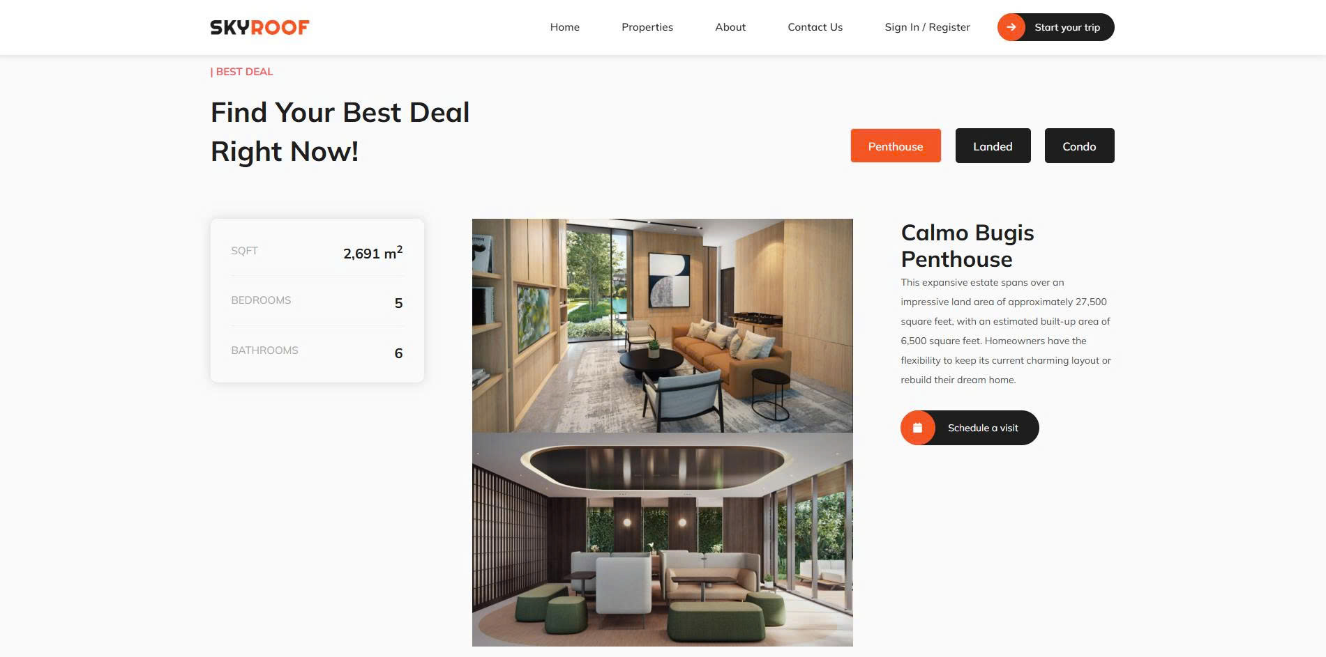 Description: SkyRoof is a website that provides information about a service to view information and book rooms online. Users will know the details of the room type they want to stay in and from there will be booked through the website. The administrator will manage all room types as well as information for each room. This is just a website that provides basic information.